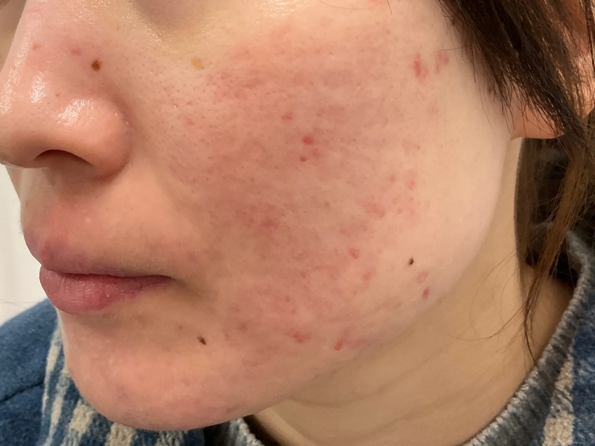 イソトレチノインが皮膚に影響を及ぼし始めるのに1週間前後かかります。そのため、最初の何日かは大して何も起こってないように感じます。